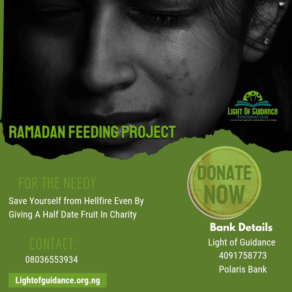 As we embark on the Journey of the blessed month of Ramadan, the Light of Guidance Foundation invites you to join us in our noble endeavor to provide sustenance to those in need. Our Ramadan Feeding Project aims to bring hope and nourishment to vulnerable communities, ensuring that no one goes hungry during this sacred month.